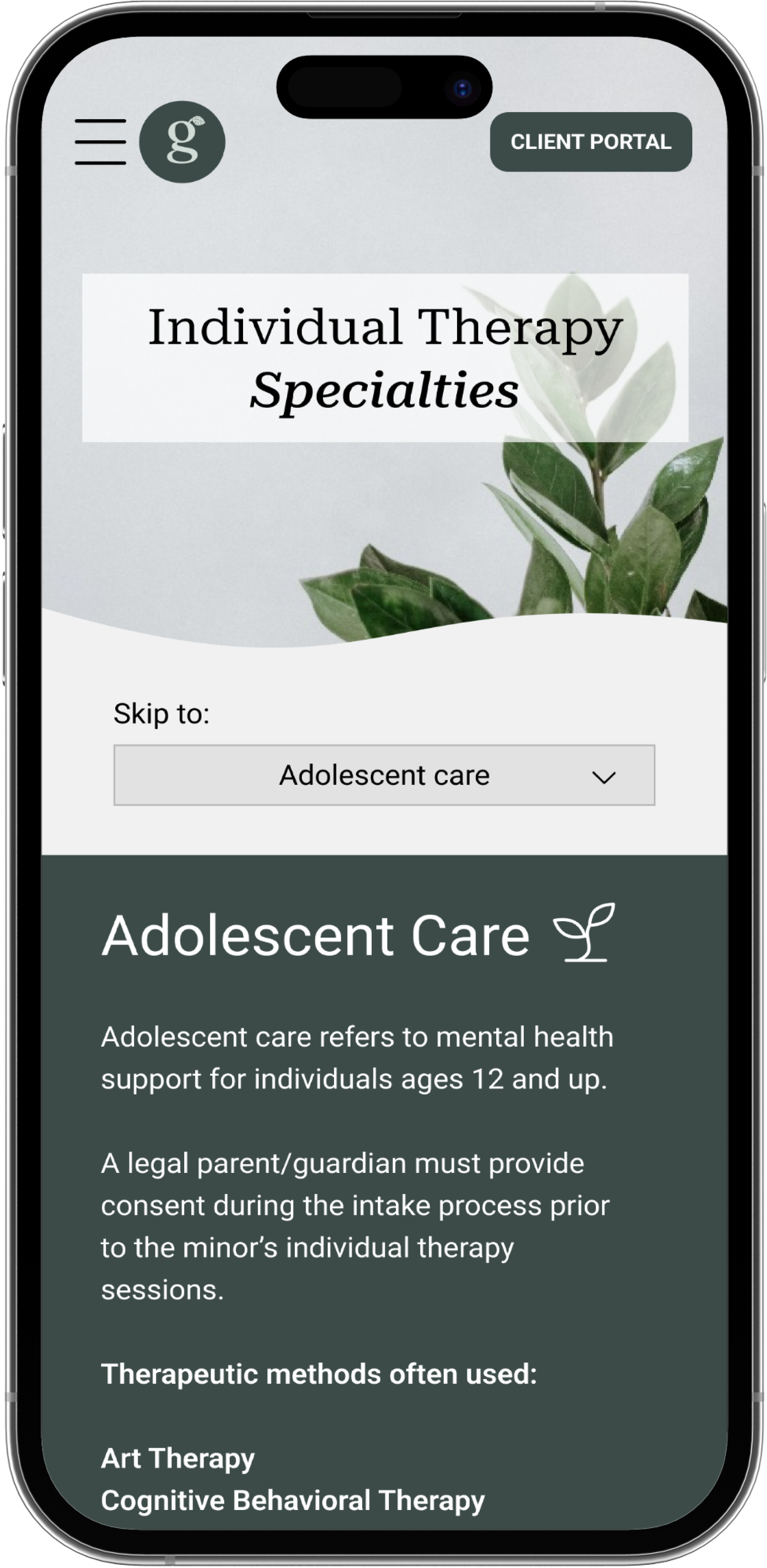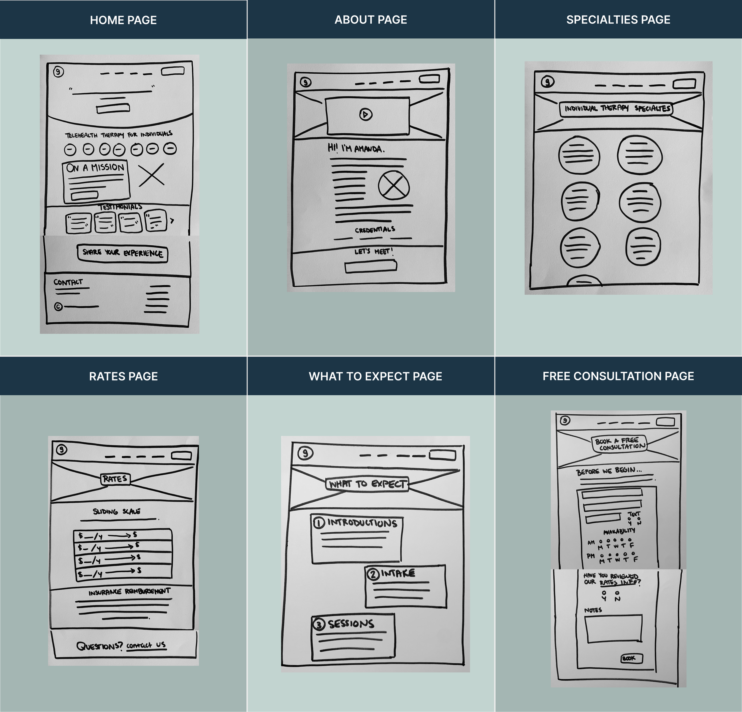 This project was my first pro bono work as a UX designer. My client was a therapist who currently works at a clinic in Tennessee. She plans to launch her own private practice soon, and she asked me to design a website from scratch.