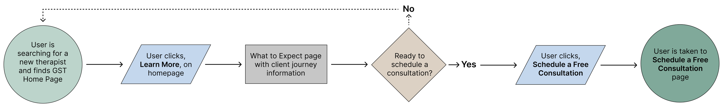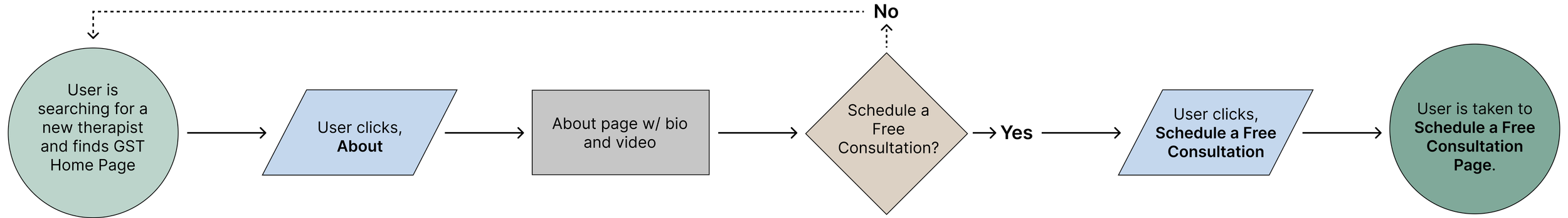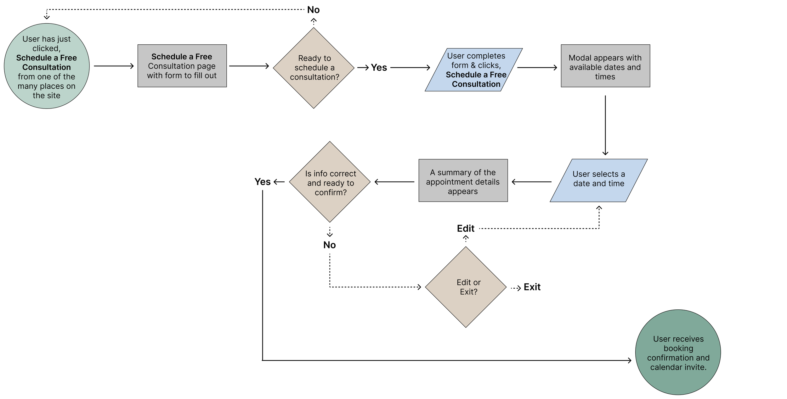 Schedule a Free Consultation Page User Flow: User visits Schedule a Free Consultation page and either schedules or resumes browsing information.