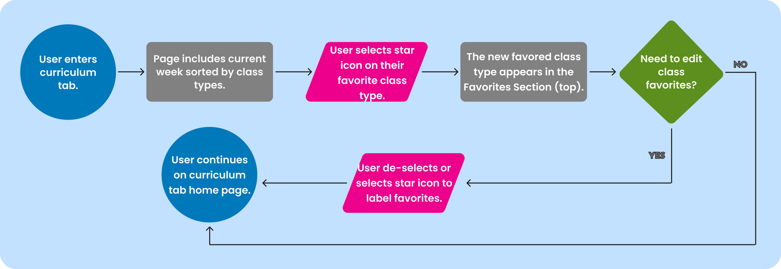 This flow solves for speedy navigation needs while adding the bonus of customization for users. The intention here is to allow users to craft their own navigation experience, placing classes they teach most often within quick and easy reach. This is a brand new feature to speed up the task of finding a specific class curriculum.